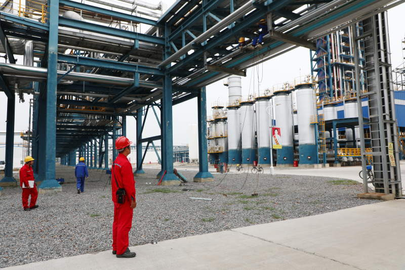 黨員、氣分車間主任劉升正對(duì)丙烯進(jìn)油品管線配管施工作業(yè)進(jìn)行安全監(jiān)護(hù)。